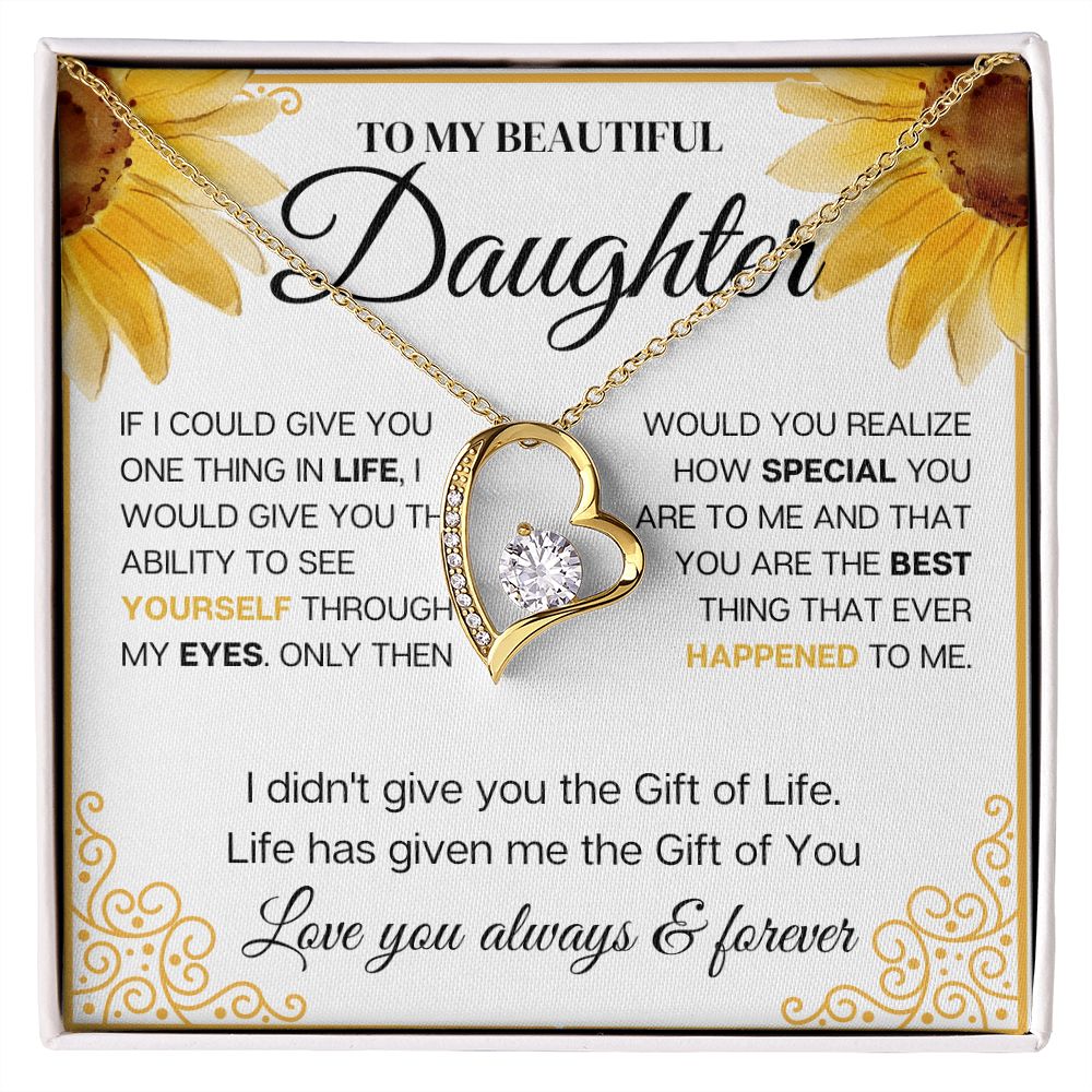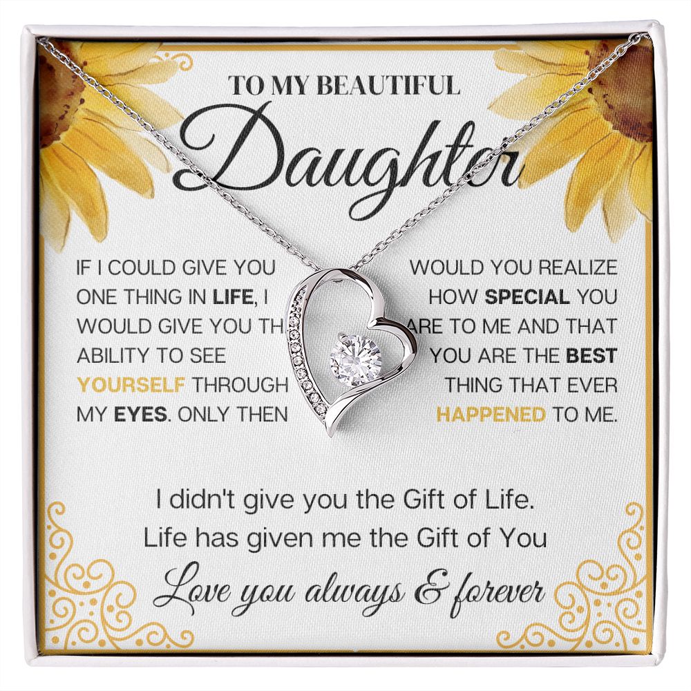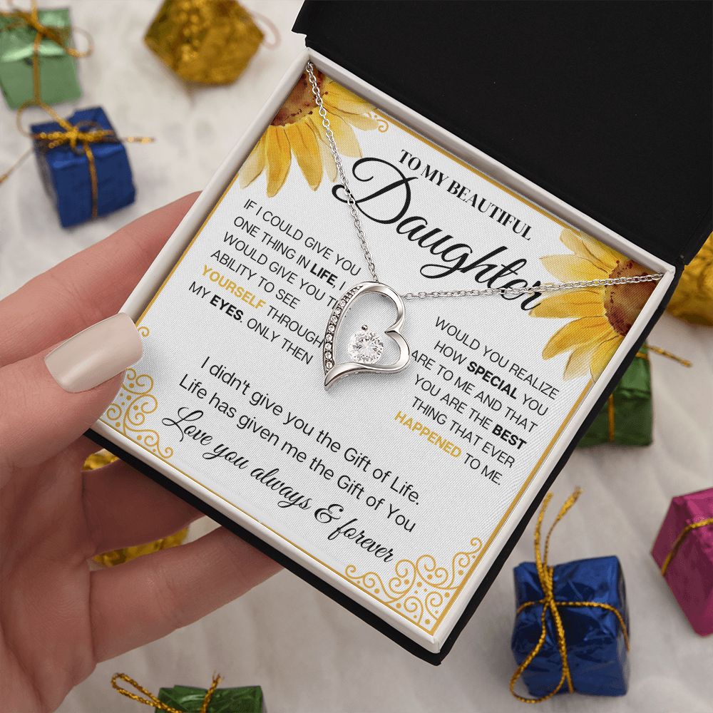 The dazzling Forever Love Necklace is sure to make her heart melt! This necklace features a stunning 6.5mm CZ crystal surrounded by a polished heart pendant embellished with smaller crystals to add extra sparkle and shine. Beautifully crafted with either a white gold or yellow gold finish, be sure to give her a classic gift she can enjoy everyday.