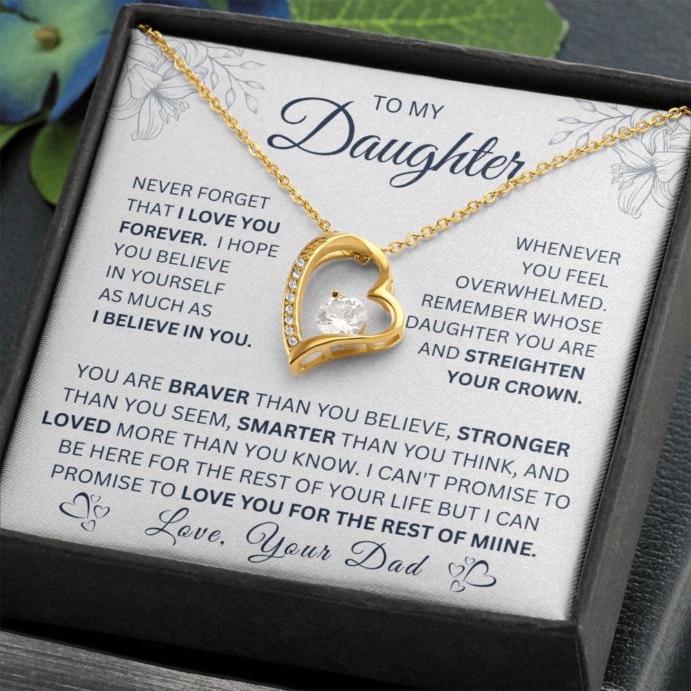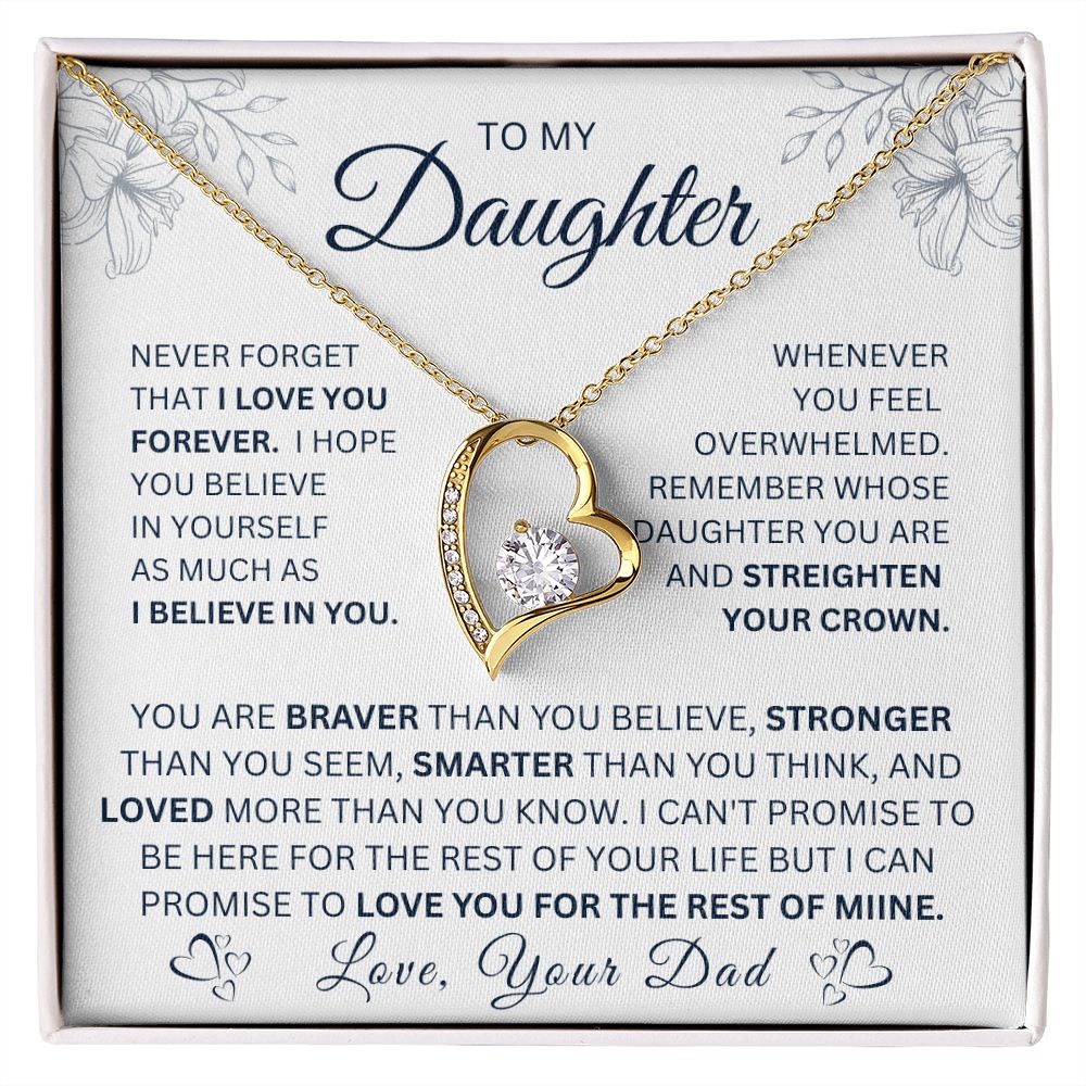 The dazzling Forever Love Necklace is sure to make her heart melt! This necklace features a stunning 6.5mm CZ crystal surrounded by a polished heart pendant embellished with smaller crystals to add extra sparkle and shine. Beautifully crafted with either a white gold or yellow gold finish, be sure to give her a classic gift she can enjoy everyday.