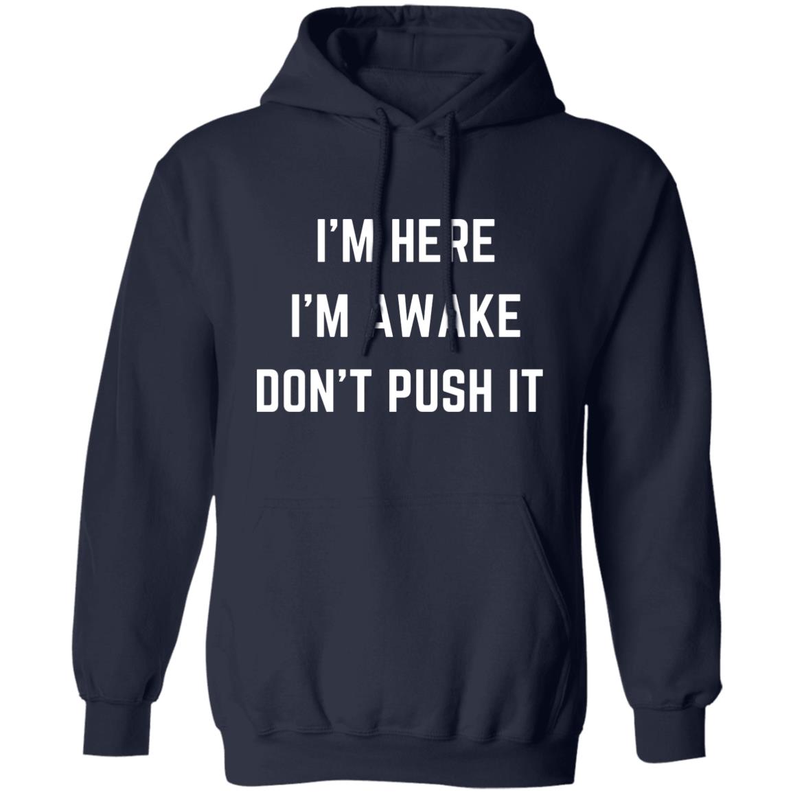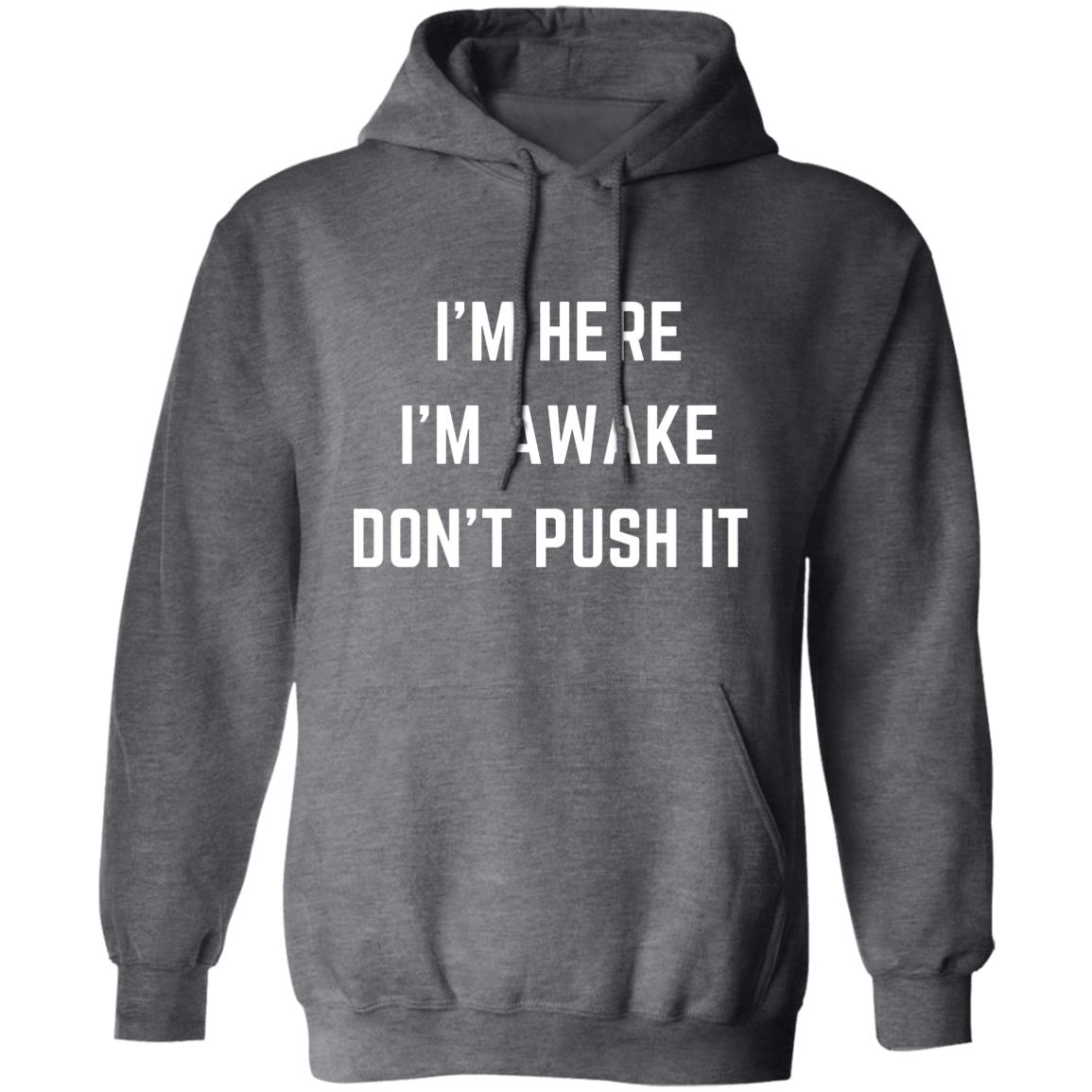 I'm Here I'm Awake Don't Push It HoodieSarcastic Hoodie Funny Hooded Sweatshirt Funny Winter Hoodies Adult Humor Funny Gift Idea Sarcasm G185 Pullover Hoodie