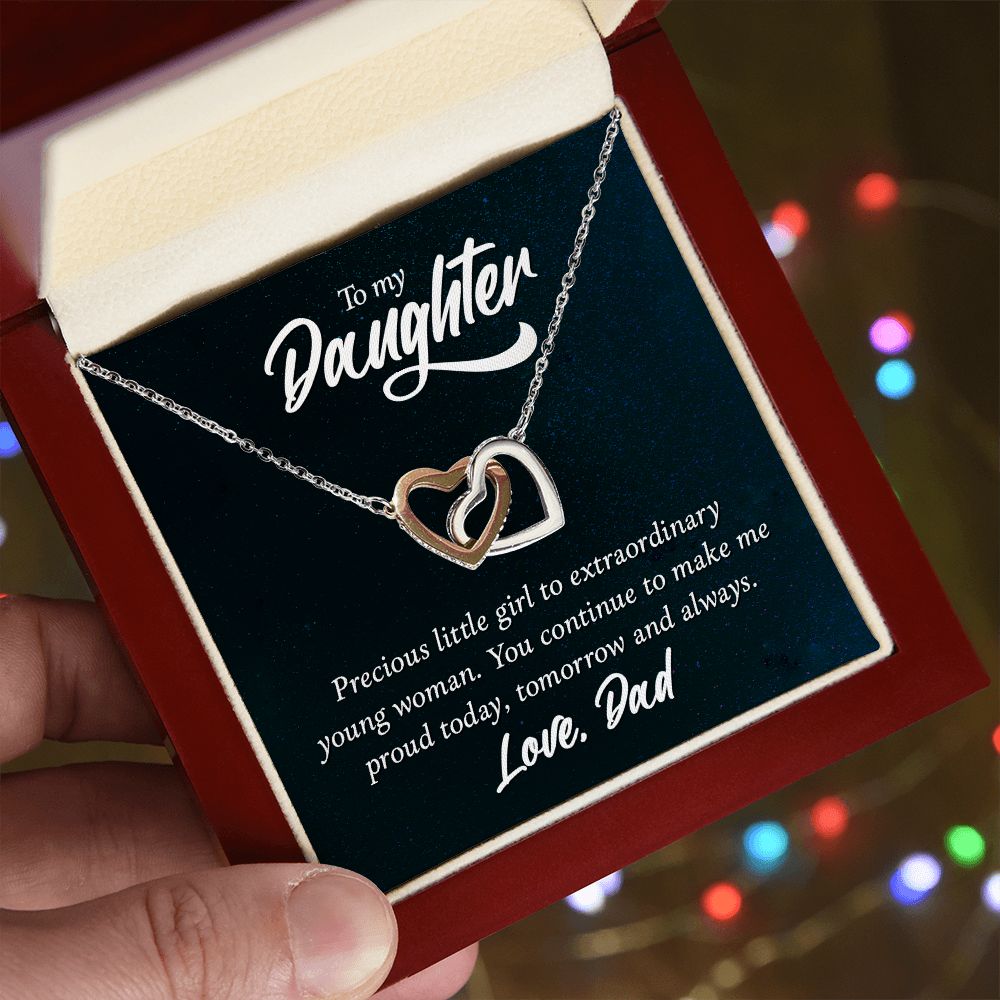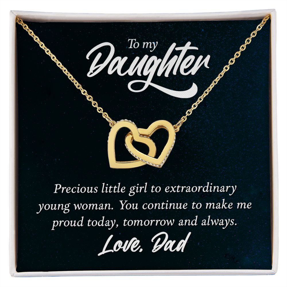 Interlocking Heart Necklace, Daughters gift from Dad, two tone necklace, Personalized gifts