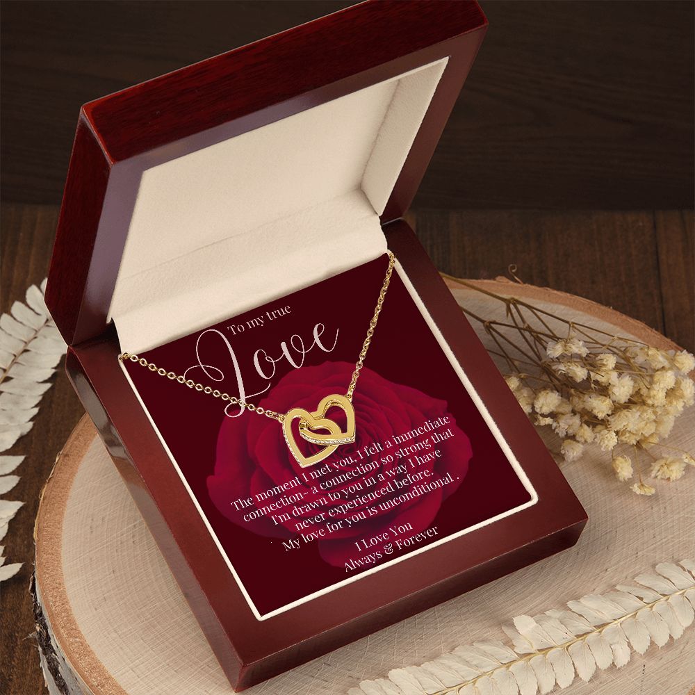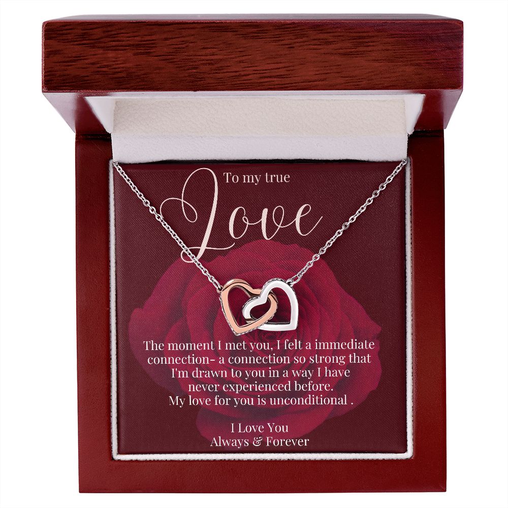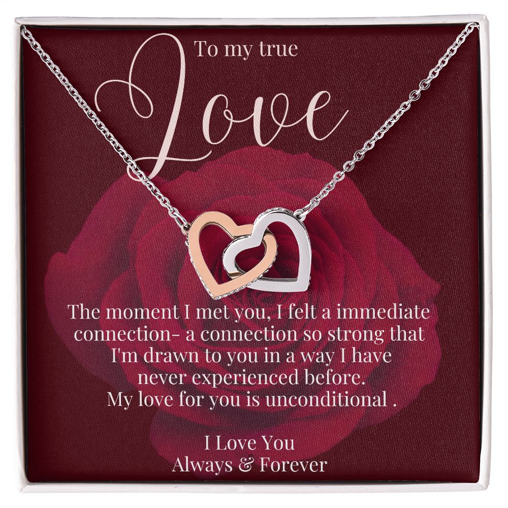 To my true Love; The moment I met you, I felt an immediate connection- a connection so strong that I'm drawn to you in a way I have never experienced before. My love for you is unconditional. I Love You Always & Forever