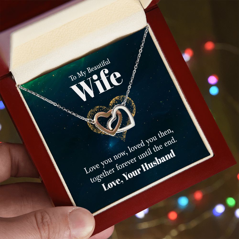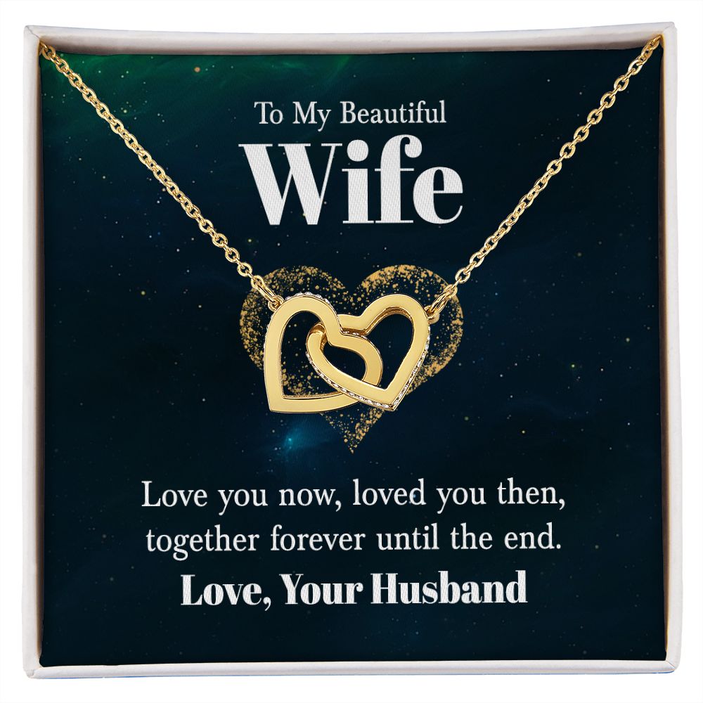 Interlocking heart, two tone necklace, To my beautiful wife, Personalized gifts, necklace